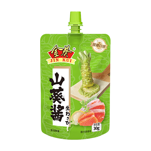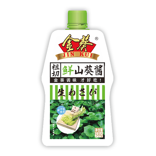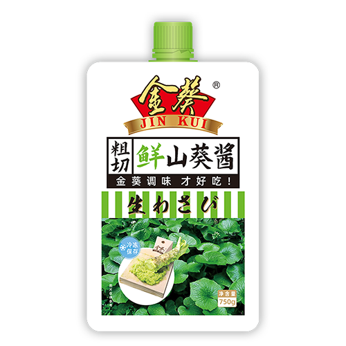 金葵鮮山葵醬口感柔和且細(xì)膩,粗切工藝還原原有味道,辛辣感消失后會(huì)變得清爽、香甜。